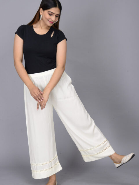 Rajputana Camisa Solid Rayon Off White Plazzo for Ethnic, Party, Casual, Office Wear for Women